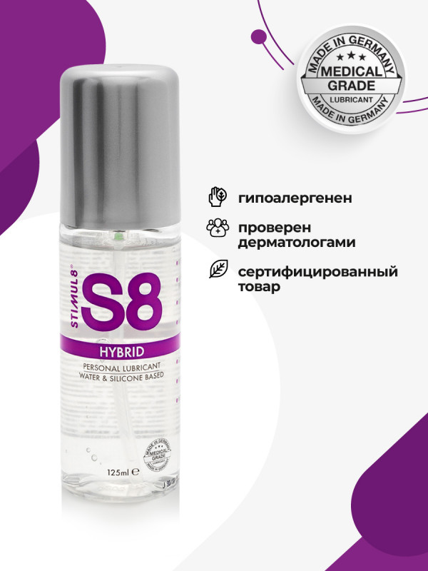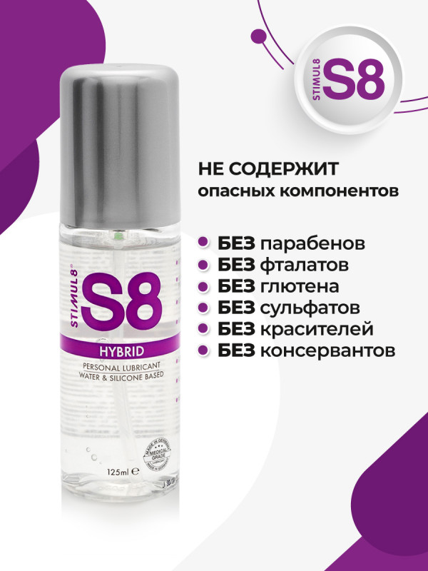 Гель "Stimul 8 Hybrid" сочетает в себе длительное скольжение силикона и нежность водной основы! Не скатывается, не создает чувство липкости и вязкости. Отлично смывается водой